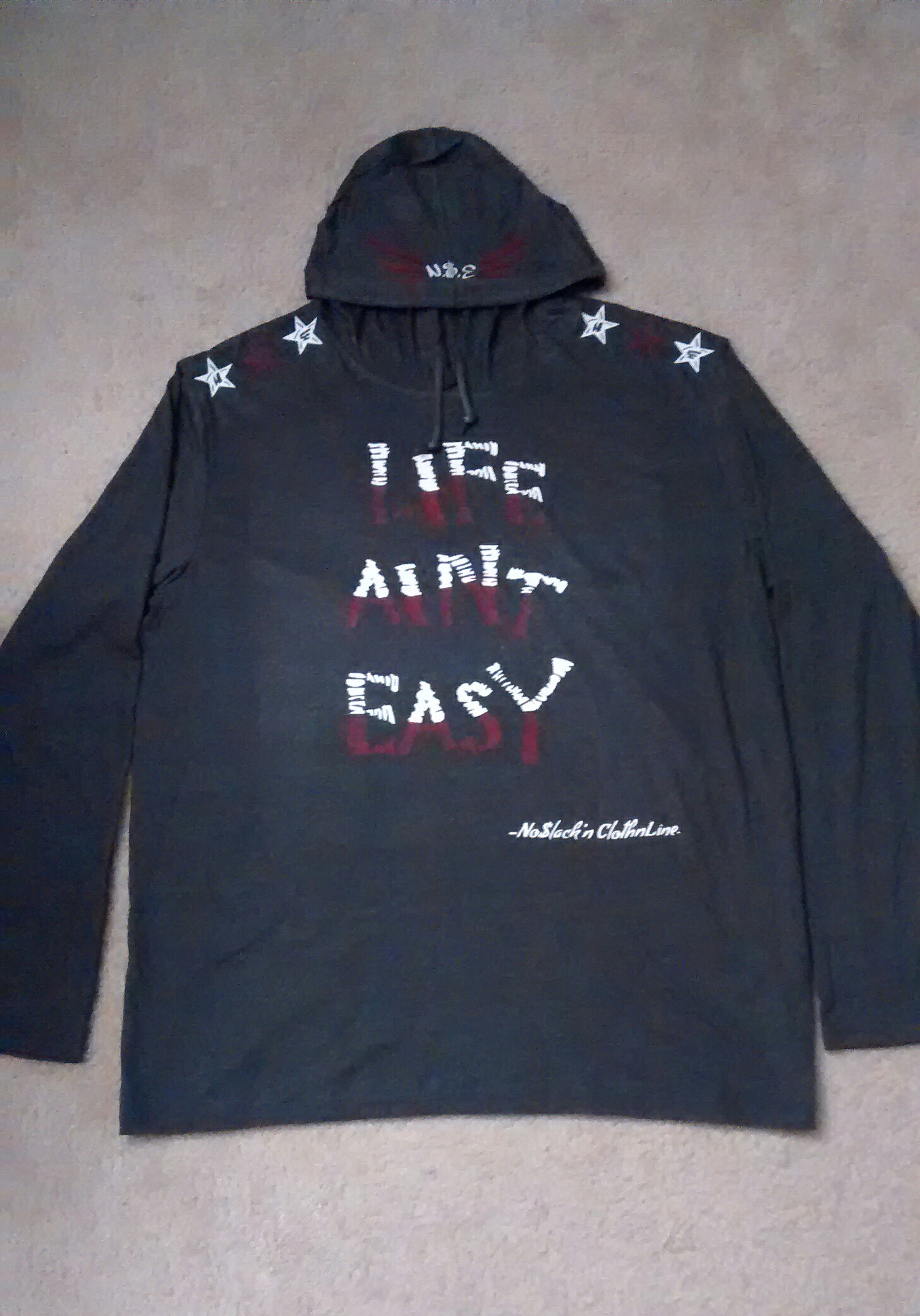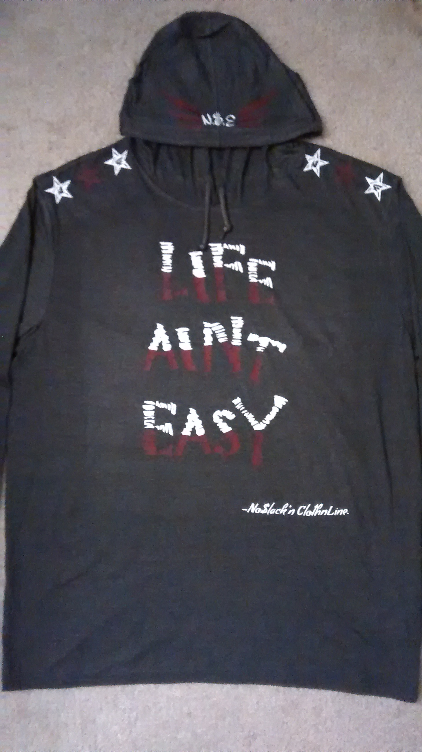 Life Ain't Easy (DarkGrey,White & Maroon) Long Sleeve Hoodie T-shirt.